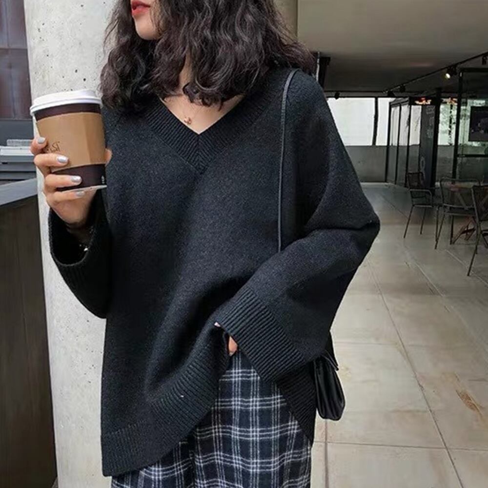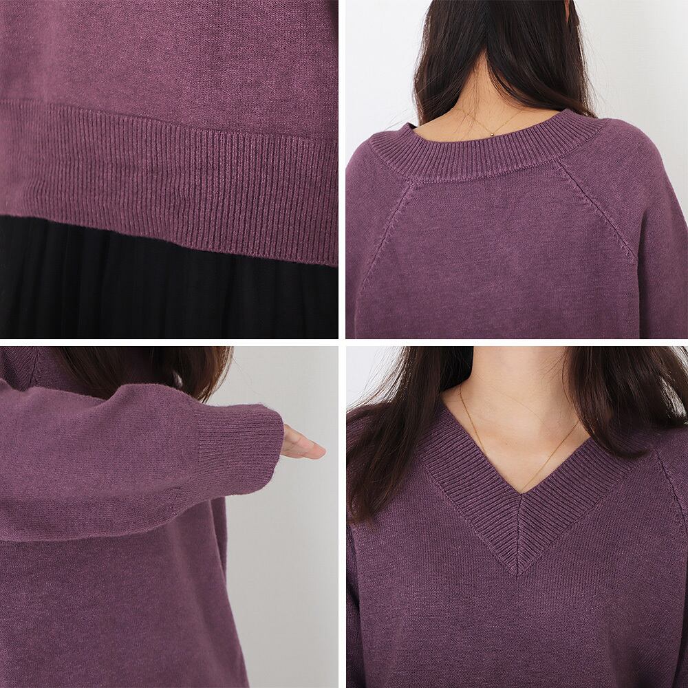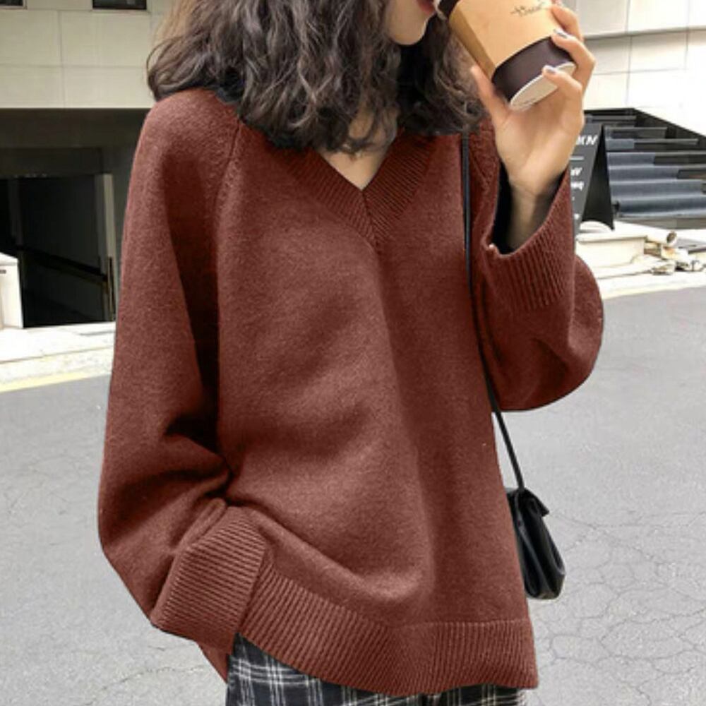 大きめにゆるく着こなすのが大人かわいいVネックニットセーター